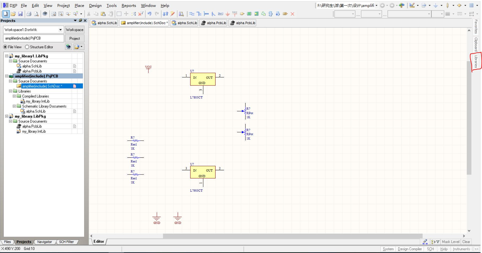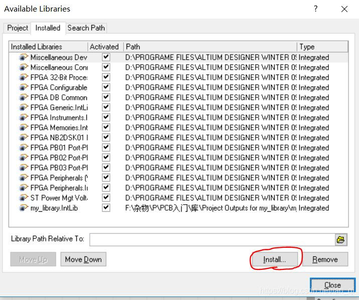 回到altium designer中,在available libraries菜单中点击Install,选择所有放入的文件即可。