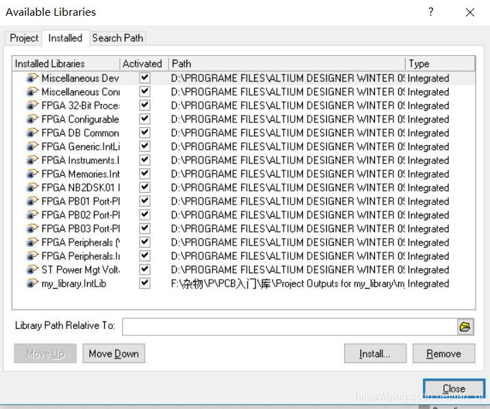 这里笔者遇到了第一个问题:笔者的altium designer的libraries菜单中相对路径栏是空的,如下图。