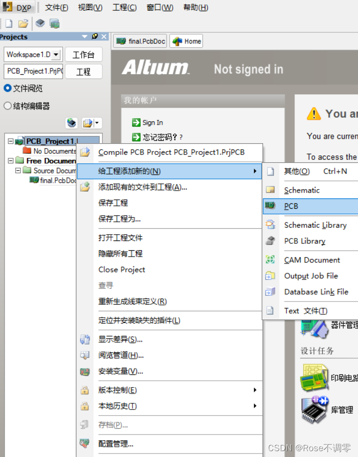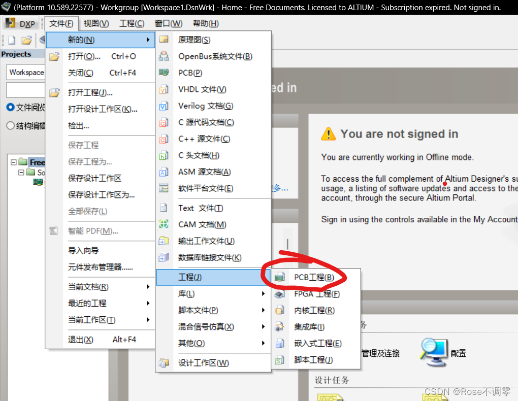 如图,在文件中新建一个 pcb工程 。