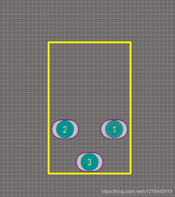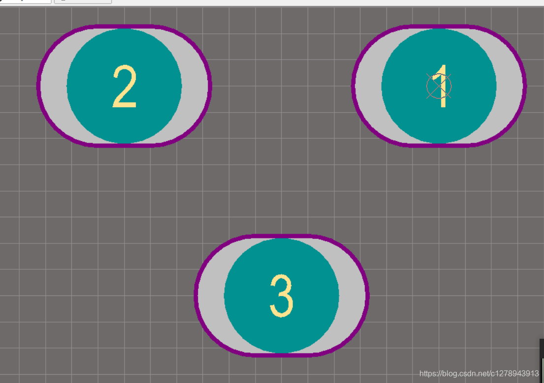 7)依次放置焊盘:在窗口的左下角可以看到光标所处位置的坐标值,在坐标(-300,0)放置焊盘2,在坐标(-150,-200)处放置焊盘3,右击或按Esc(退出)键退出放置焊盘模式。