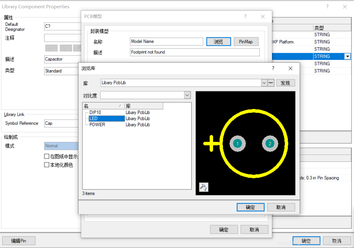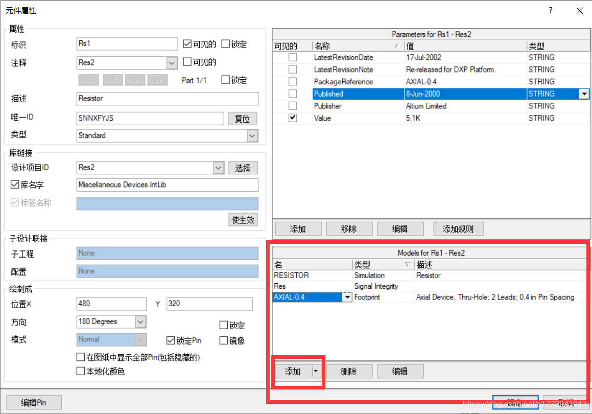 创建的封装可以1添加到原理图元件库,与元件集成在一起;也可以直接添加到原理图的元件中。两种方式如下。