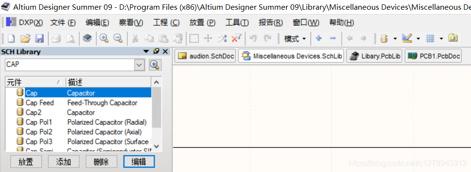 方法如下:在原理图元件库控制板单击电解电容元件名称“CAP”
