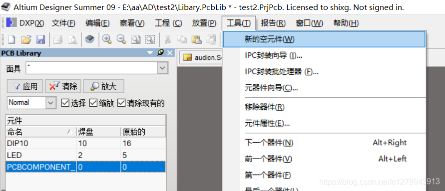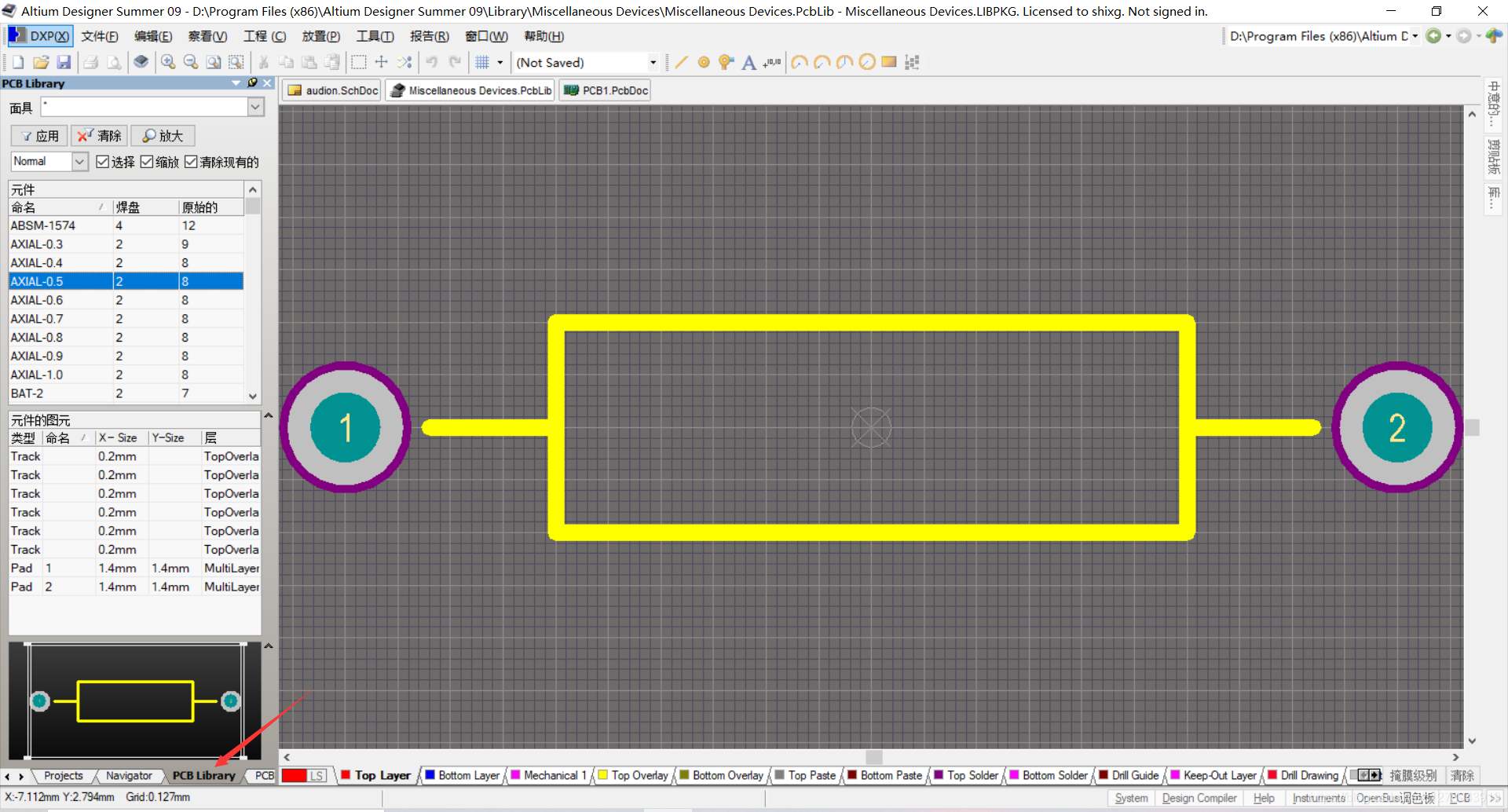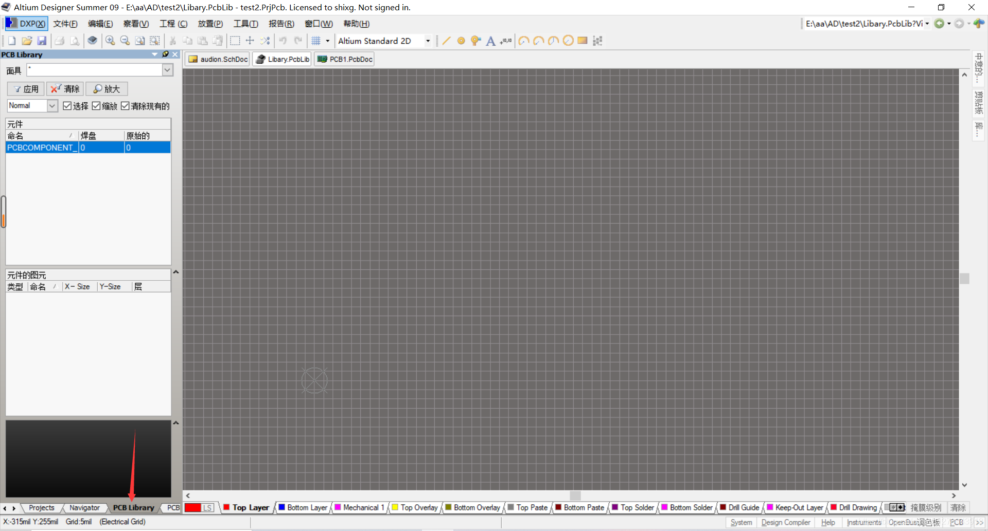 1)点击Library.PcbLit,将其作为当前被编辑的文件