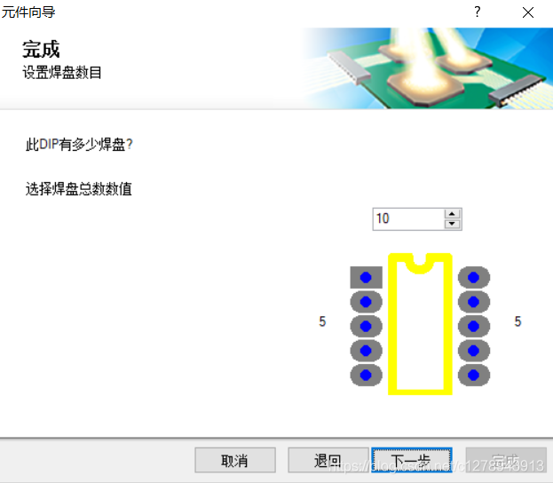 5)单击“Next(下一步)”按钮,弹出“Set the number of pads(设置焊盘数目)”对话框,根据焊盘的多少进行设置,由于是DIP封装设置,因此一般要采用双数。