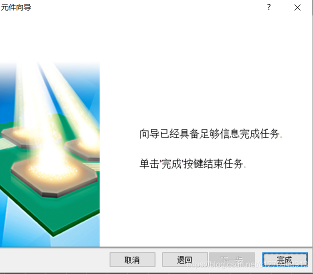 7)单击“Next(下一步)”按钮,弹出向导完成对话框,单击"Finish"按钮完成创建封装向导。如果需要的是DIP元件,基本已经完成,但是需要的是类似DIP的元件,可能和元件封装有一定的差别,则再进行手工修改。
