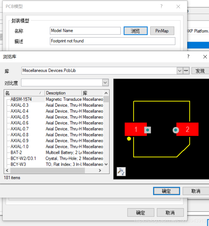 选取“Library.PCBLIB”元件库,在其中寻找对应制作的封装,单击“OK”(确定)按钮,完成添加。