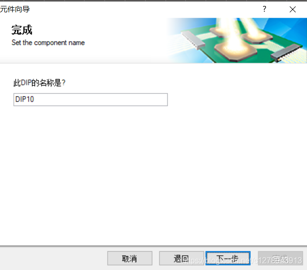 6)单击“Next(下一步)”按钮,弹出“set the component name(设置元件封装名称)”对话框,在其中输入名称。