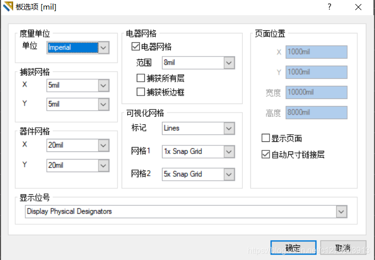 3)PCB参数设置:执行菜单命令“Tools(工具)”》》"Library Options(器件库选项)",弹出“Board Options(板选项)”对话框。