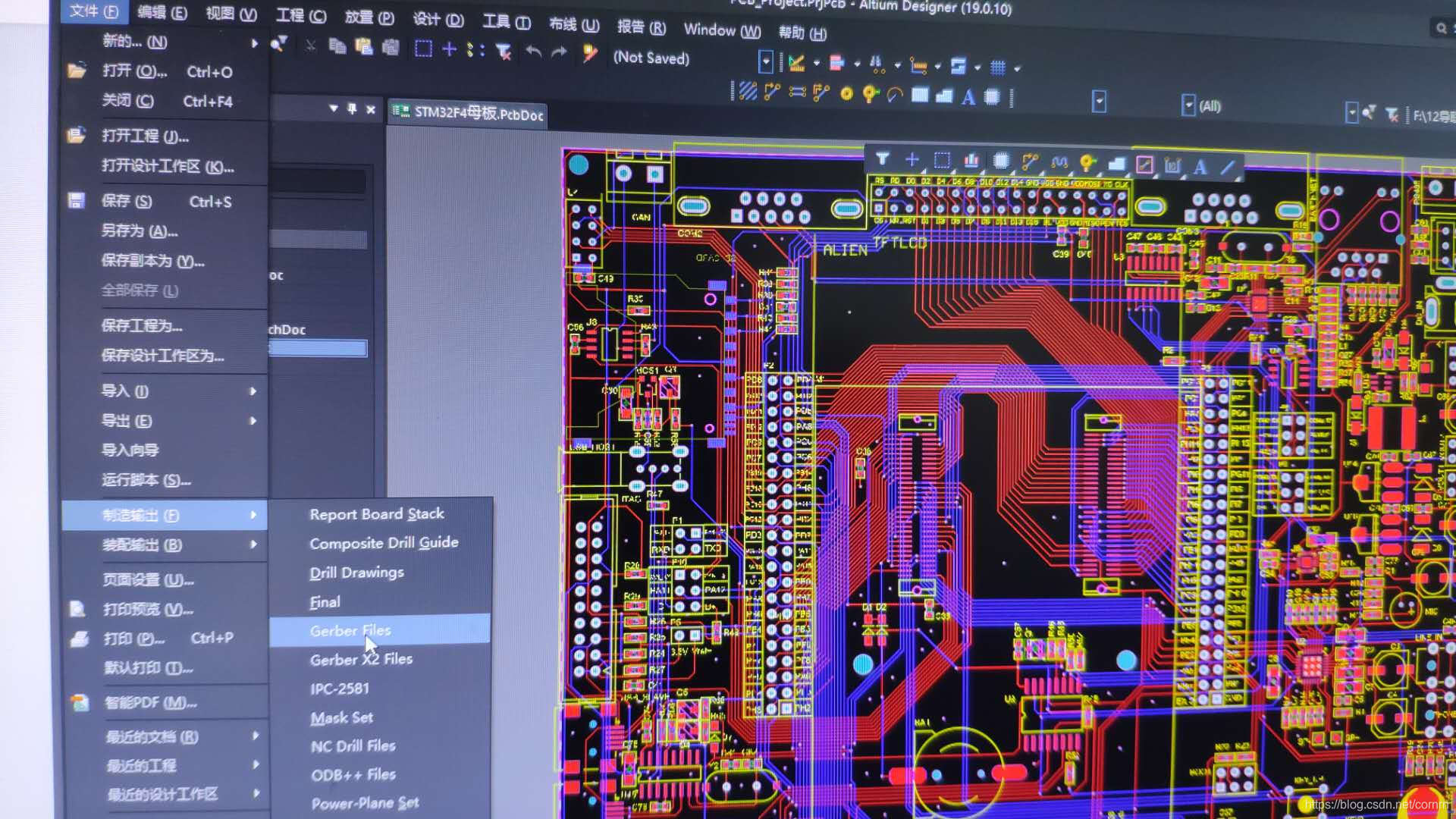 1.1、点击【文件】--【制造输出】--【Gerber Files】,如图1