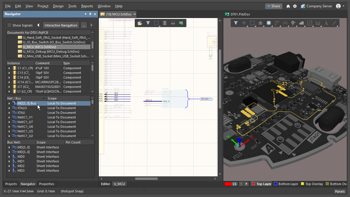 | i | 在Altium Designer 20.0之前的版本中,只有手动编译才会生成UDM。在此之后,每次动态编译都会在UDM的基础上递增更新,创建动态数据模型(Dynamic Data Model,简写为DDM)。这个过程就不再需要手动参与了,全程自动完成。连接关系模型则在用户每个操作之后自动累进更新。 |