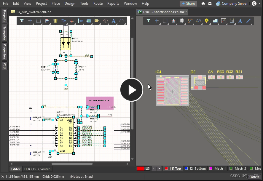 从原理图中交叉选中PCB元器件,这个功能要在编辑器的Tools菜单中开启。点击此链接即可跳转观看对应的GIF动画。