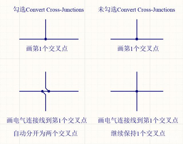 5.Convert Cross-Junctions:当两个电气连接线存在电气连接交叉关系时,是保持一个交叉点,还是自动把1个交叉点拆分为两个交叉点。