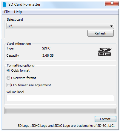SD卡联盟强烈强烈建议使用此软件来格式化 SD/SDHC/SDXC 卡,而不要使用各个操作系统随附的格式化工具。通常,操作系统附带的格式化工具可以格式化包括 SD/SDHC/SDXC 卡在内的各种存储介质,但是可能无法针对 SD/SDHC/SDXC 卡进行优化,并且可能导致性能降低。