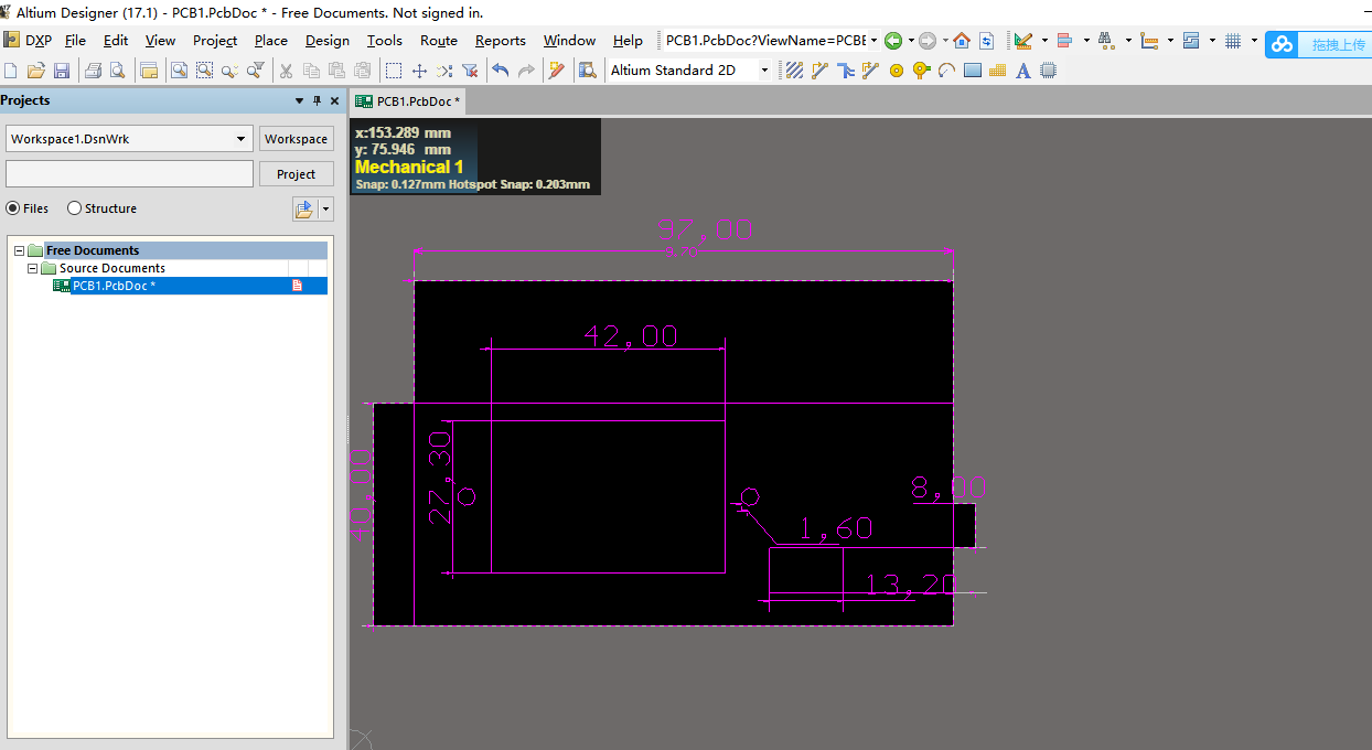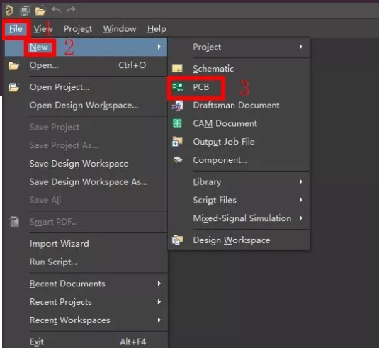 点击File菜单下的New的PCB,新建PCB文件。