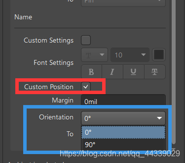 (3)在引脚的属性里name栏内,把下图中红色框内对勾打上,然后可以在蓝框内修改引脚名称的放置角度