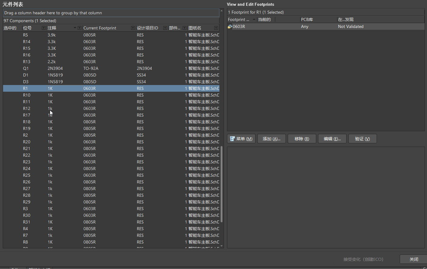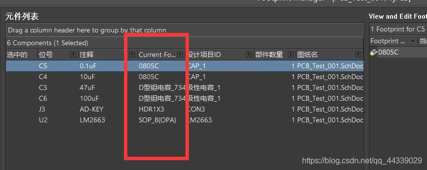 (3)按照BOM表中的封装形式,在封装管理器中进行相关封装的更改