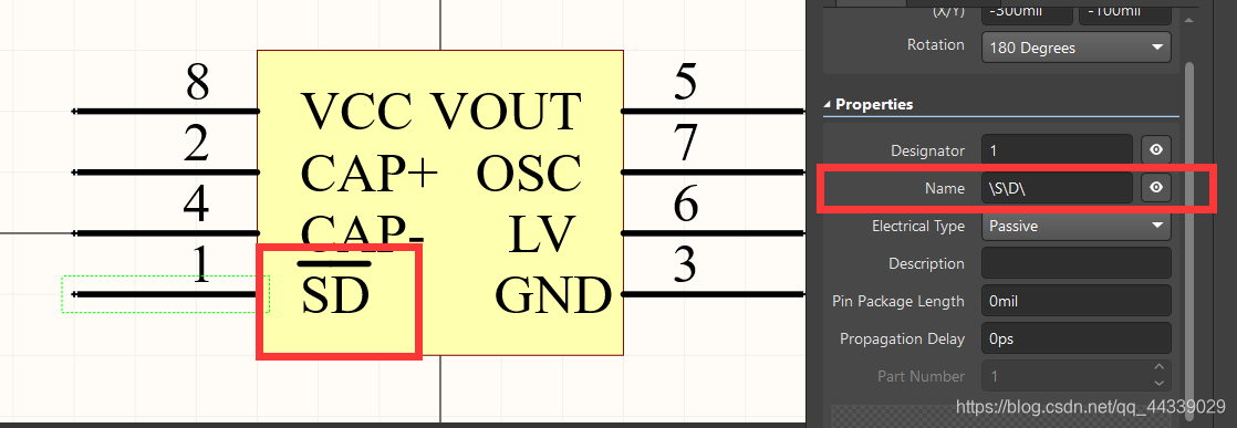 (4)在引脚名字字母的前后加上如下图所示的反斜线,可以在图中标出上划线,如下图所示: