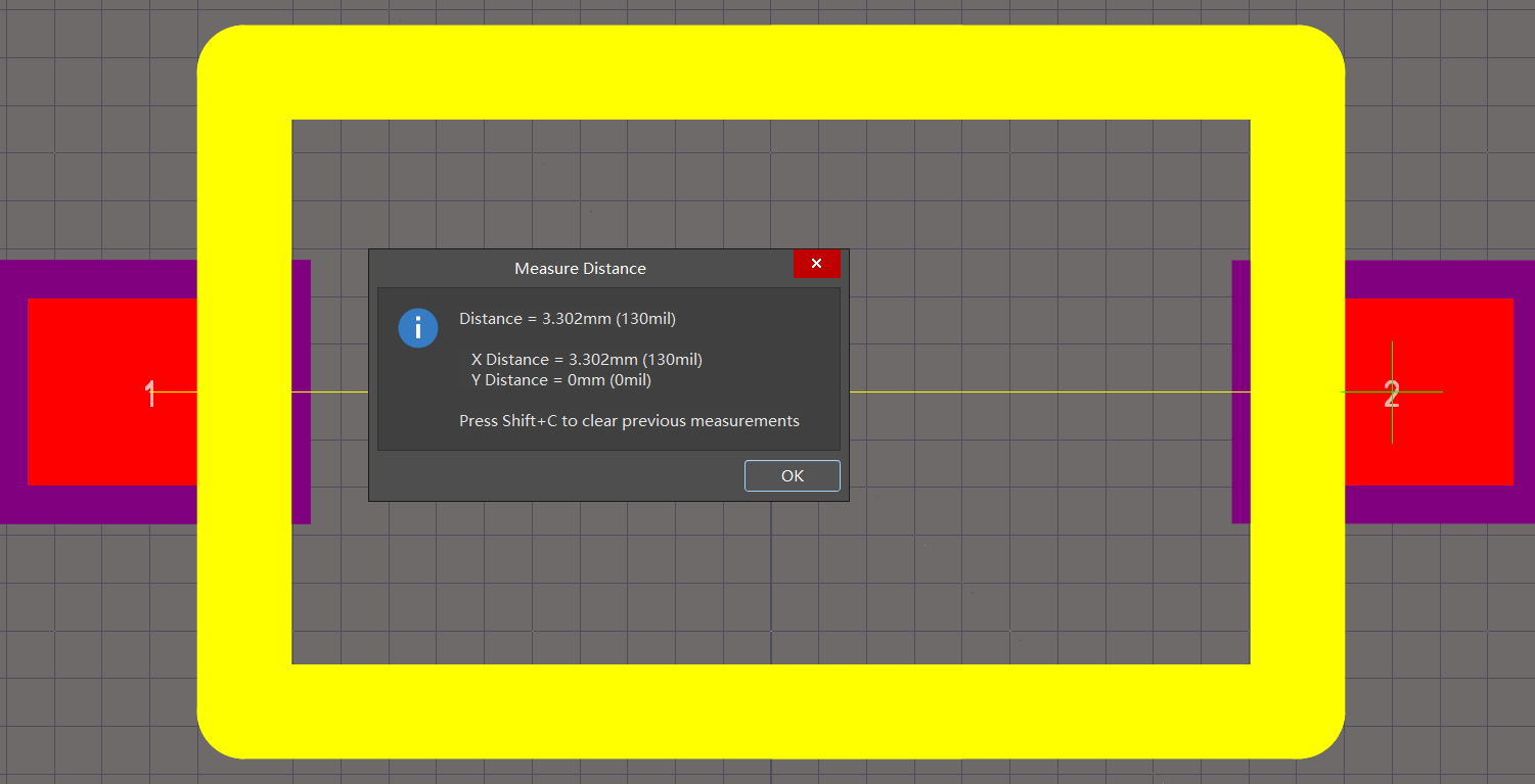 选中要移动的焊盘,【M】-【M】 使两个焊盘重合,重合之后,再按【M】 选择【通过X/Y移动选中对象】 然后输入想要移动的距离即可 130mil Ctrl+M可以测距,点击两个焊盘中心点即可