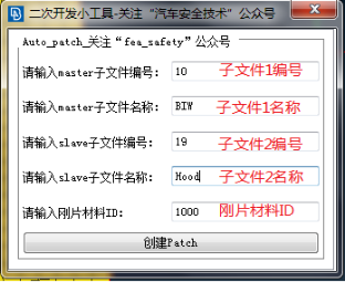 对于整车碰撞模型来说有上百个刚片需要建立,并且需要按编号规则进行编号命名,若完全手动创建,不仅耗时较多,且容易出现编号、命名等错误,进而导致整车模型出错。为此,开发了一个自动快速建立刚片的小插件,能实现如下功能:
