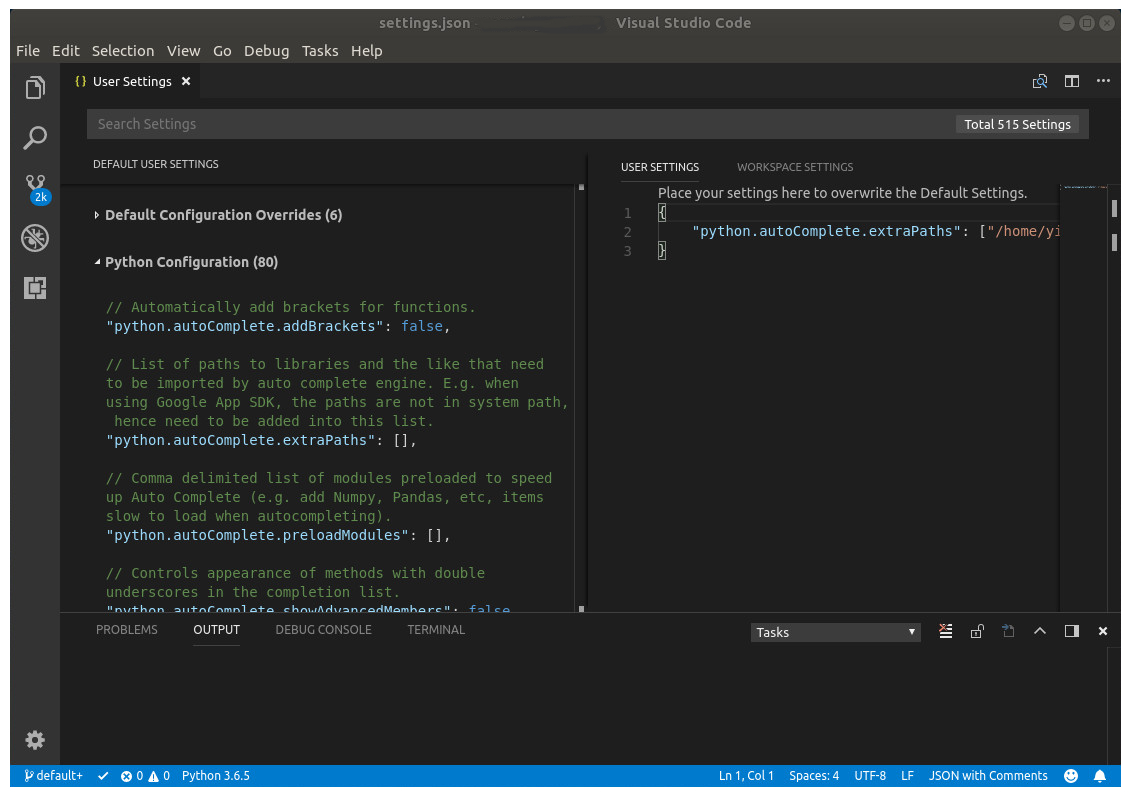 安装过程完成后,需要设置ANSA和META自动补全文件的路径。转到settings > Python Configuration,然后选择并编辑 python.autoComplete.extraPaths选项。