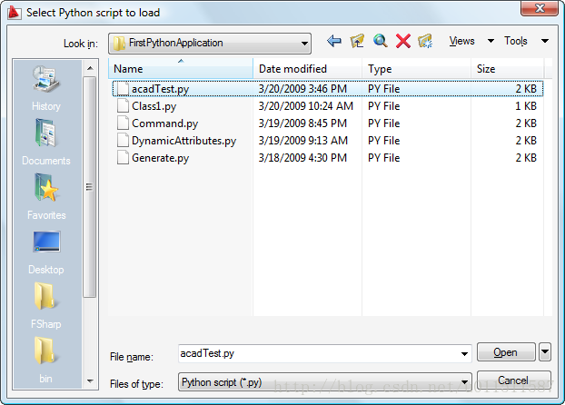 当我们编译并且用NETLOAD命令加载了我们用C#编写的PythonLoader程序并且执行PYLOAD命令后,我们就可以选择我们的Python脚本: