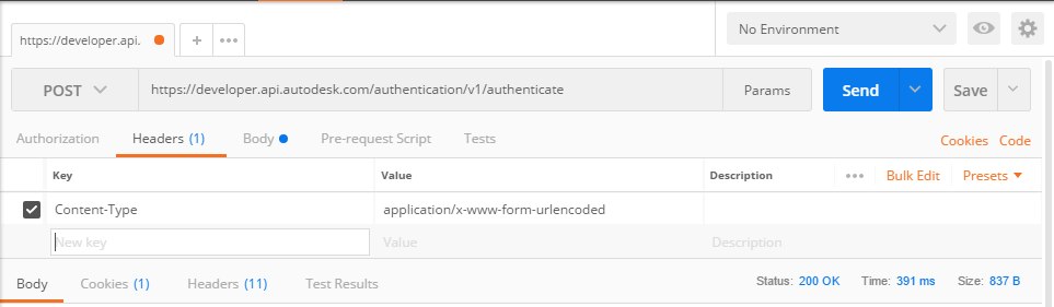 | 方法和URI | POST https://developer.api.autodesk.com/authentication/v1/authenticate |