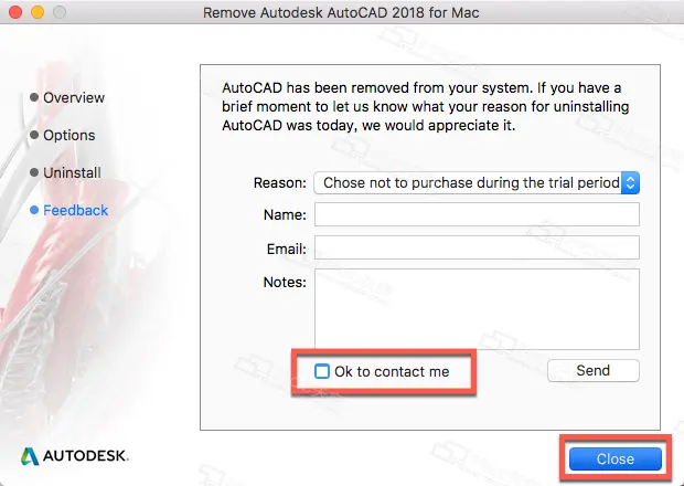 8.AutoCAD 2018 for Mac 破解版卸载完成,如图: