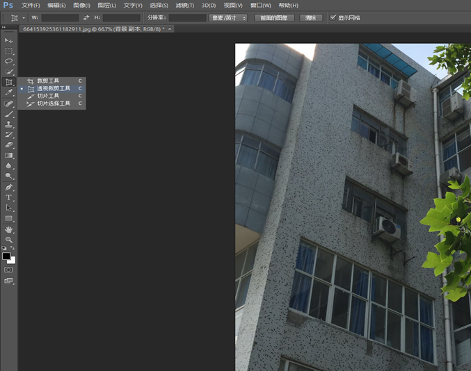 选中 透视 裁剪工具,依次点选四个边角。