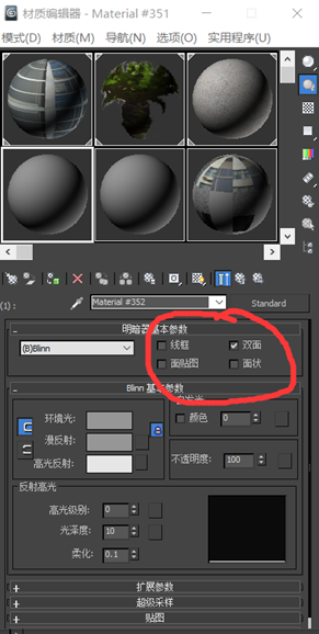 方法1:在材质编辑器中,设置颜色材质为双面。