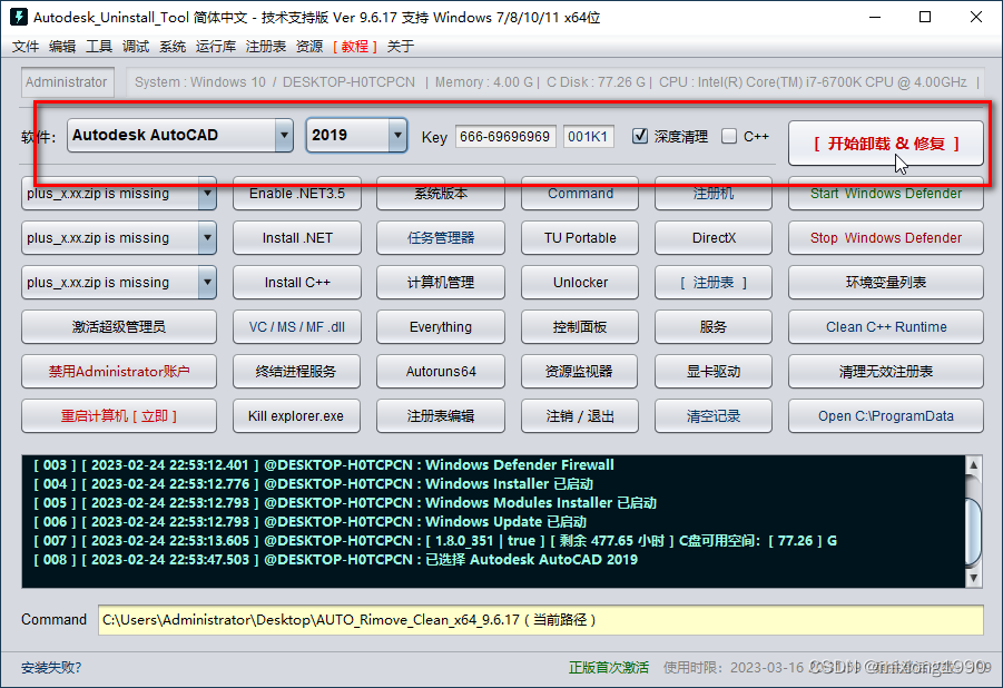 AutoCAD没有按照正确方式卸载,导致AutoCAD安装失败。楼主也查过网上关于如何解决AutoCAD安装失败的一些文章,是说删除几个AutoCAD文件和AutoCAD软件注册表就可以解决AutoCAD安装失败的问题,实际的情况并没有这么简单,导致AutoCAD安装失败的原因有很多种。AutoCAD安装时产生了几万条注册表,想要彻底卸载AutoCAD软件再重新安装AutoCAD就有几万条AutoCAD注册表要删除,非人力所能为。现在虽然360或者其他一些卸载软件提供了强力卸载AutoCAD的工具,可以将AutoCAD注册表和一些AutoCAD目录的AutoCAD残留信息删除,但仍不能确保将AutoCAD所有相关dll程序文件、exe可执行文件和注册表全部彻底删除干净。AutoCAD安装失败还和C++版本问题有关,因为每个版本的AutoCAD都是基于一定版本的C++版本而开发的,如果是这种情况,重装系统C++问题还是可能会存在的。安装成功后,如果缺少必要的dll 动态链接库文件 ,也会导致AutoCAD启动和注册失败。上面说了这么多,只是几种AutoCAD安装失败最常见的情况。这里使用到一个AutoCAD卸载工具,专门用来解决卸载修复AutoCAD软件卸载安装失败的问题。AutoCAD卸载工具会自动执行一系列问题的排查和修复,极大的节省了排除安装AutoCAD失败问题的时间。卸载之后,建议最好用Autodesk官方原始的安装包,压缩包的常常会缺少一些组件也可能导致AutoCAD安装失败,安装时还要使用管理员帐户进行安装。