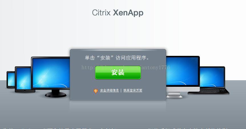 1 下载 Citrix Receiver 并正确安装后,登陆 Citrix 服务网点 20.0.8.30,浏览器仍然提示安装访问应用程序,如下: