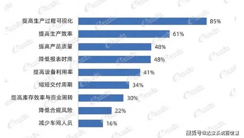 在MES系统应用成效方面,调研数据显示,企业普遍认为通过MES系统的实施提高了生产过程可视化水平,此项选择的占比高达85%。