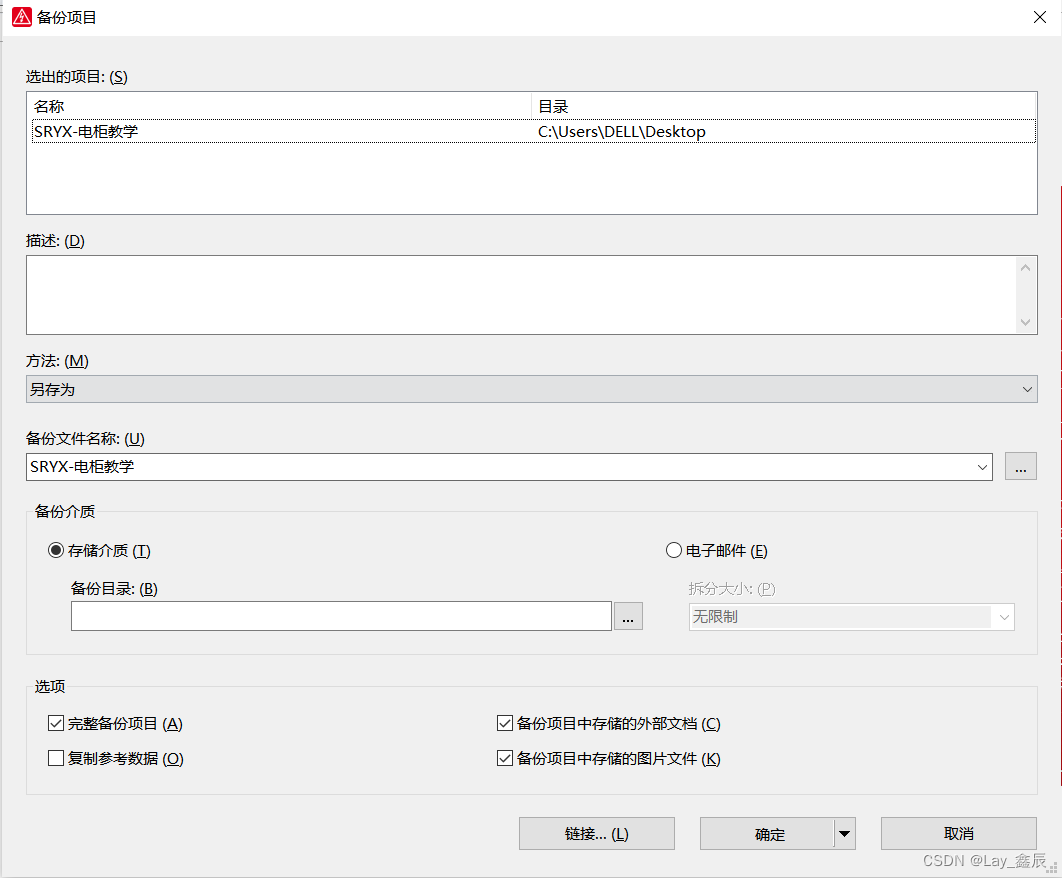 (1)单击【项目】-【备份】-【项目】,弹出“备份项目”对话框。