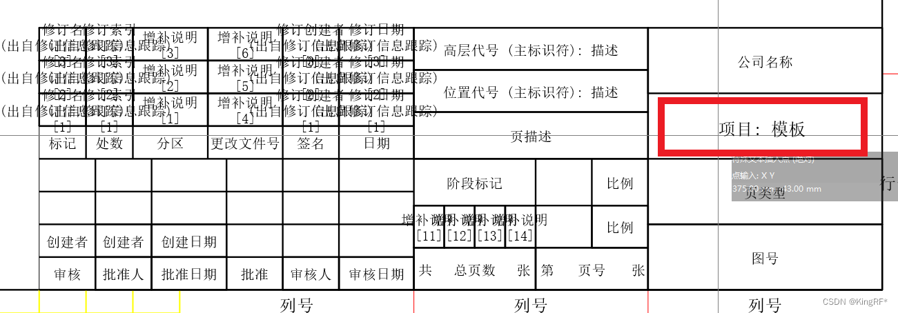 确定后,插入图框指定位置,在项目属性中修改后,此处会自动修改。