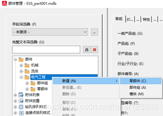 产品组的分类是EPLAN固定的,每类的内容也是固定的,用户不能创建新的类别。选择部件时尽量选择恰当的分类,不同的分类有不同的技术参数。
