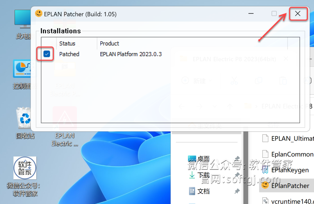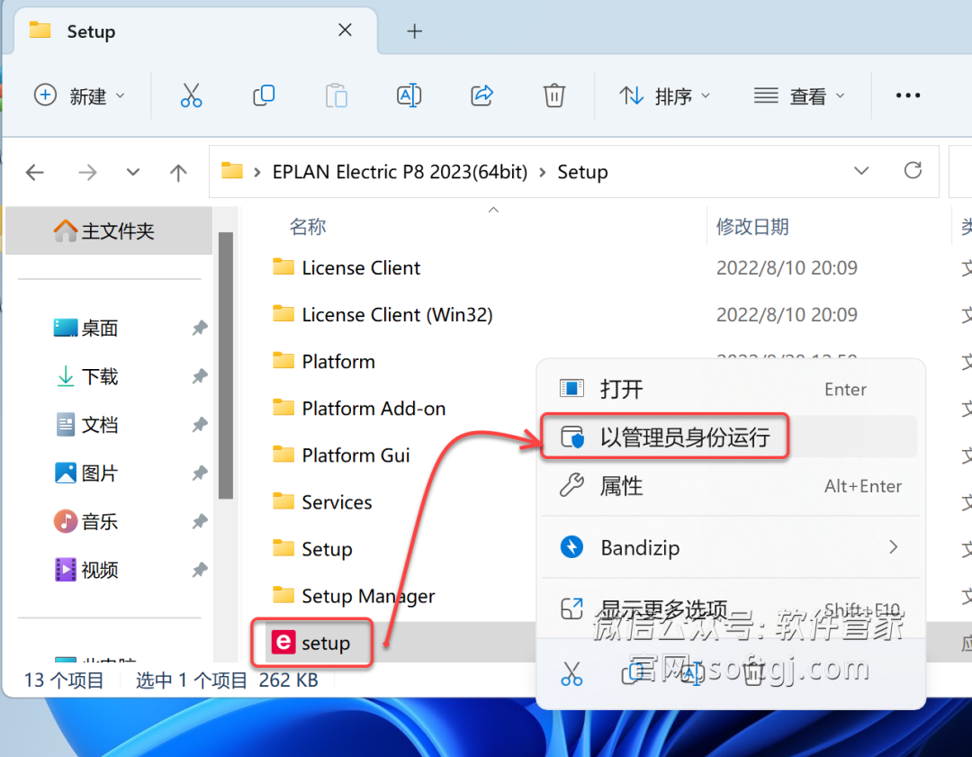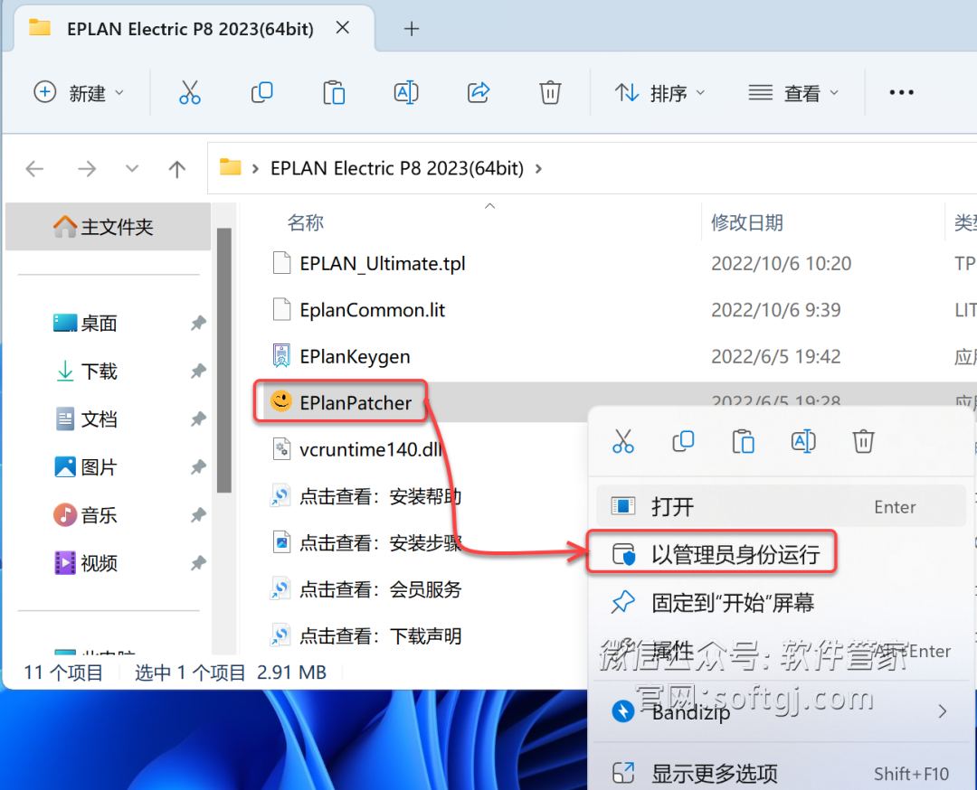 18.打开安装包解压后的【EPLAN Electric P8 2023(64bit)】文件夹,鼠标右击【EPlanPatcher】选择【以管理员身份运行】。