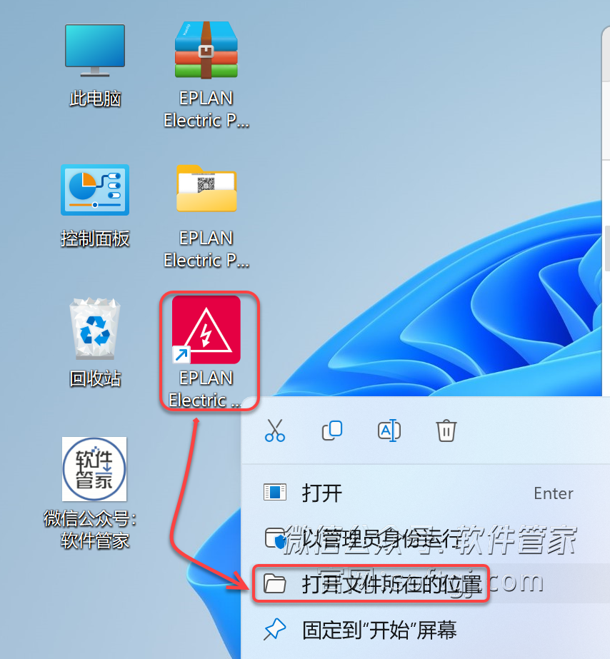 16.鼠标右击桌面【EPLAN Electric P8 2023】图标选择【打开文件所在的位置】。
