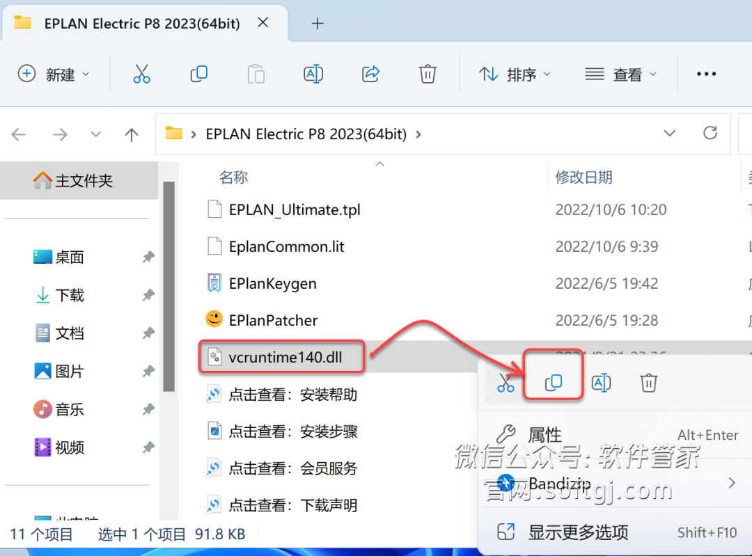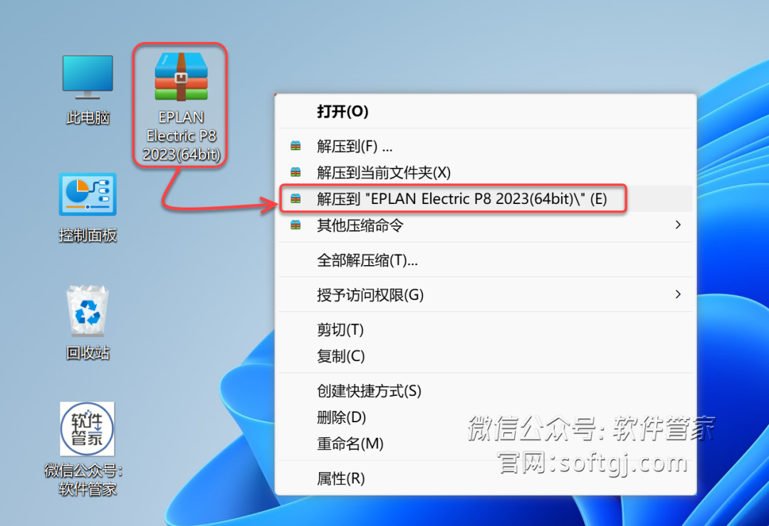 5.鼠标右击【EPLAN Electric P8 2023(64bit)】压缩包(win11及以上系统需先点击“显示更多选项”)选择【解压到 EPLAN Electric P8 2023(64bit)】。