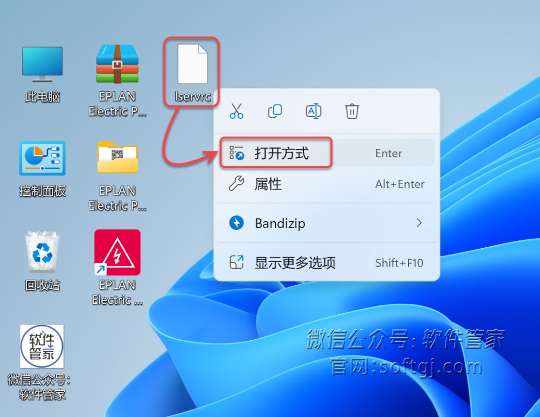 26.鼠标右击保存在桌面的【Iservrc】选择【打开方式】。