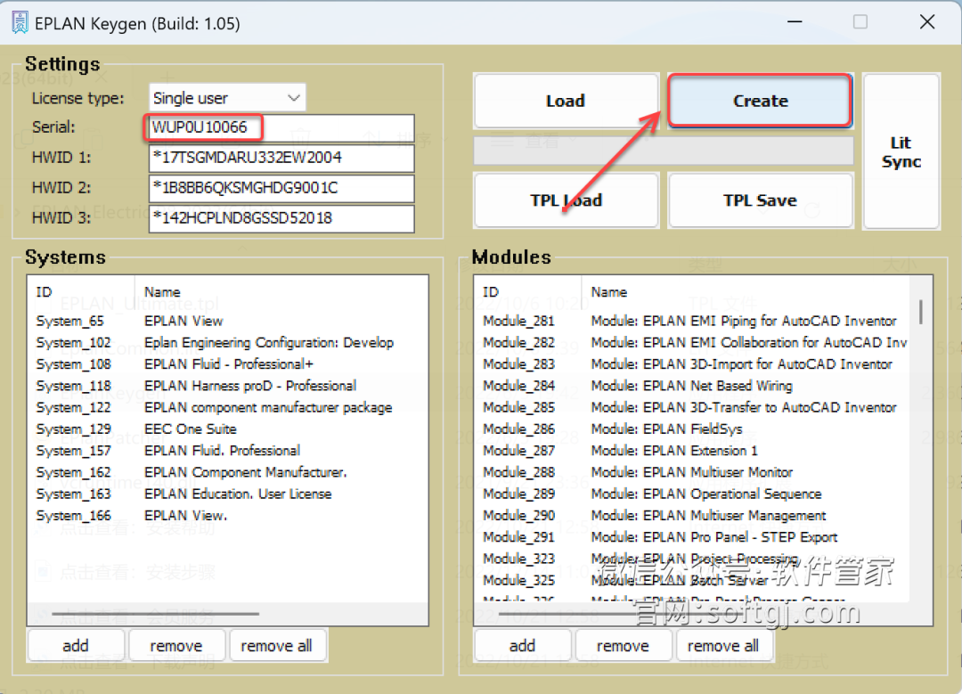 23.在Serial栏输入【WUP0U10066】,点击【Create】。