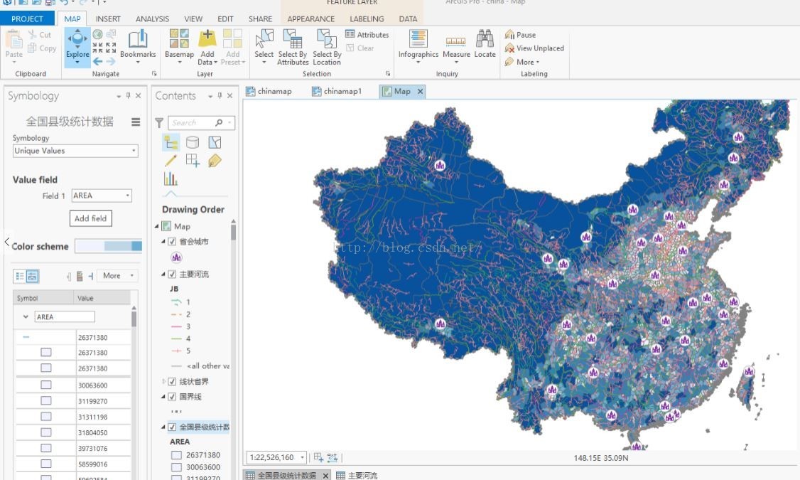 1、 打开ArcGISpro,添加自己的数据,并渲染地图。