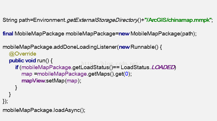 移动地图包的调用与传统地图包的调用有一些区别,它是一个异步的过程,不过好在Esri已为我们封装好了该异步接口,其调用方法如下