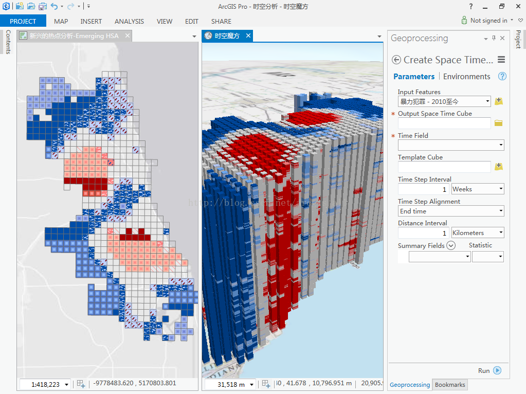 ArcGIS新增的“时空特征挖掘”(Space time pattern mining)工具集,它能够帮助用户快速分析数据的时空变化趋势并将其展现的淋漓尽致。