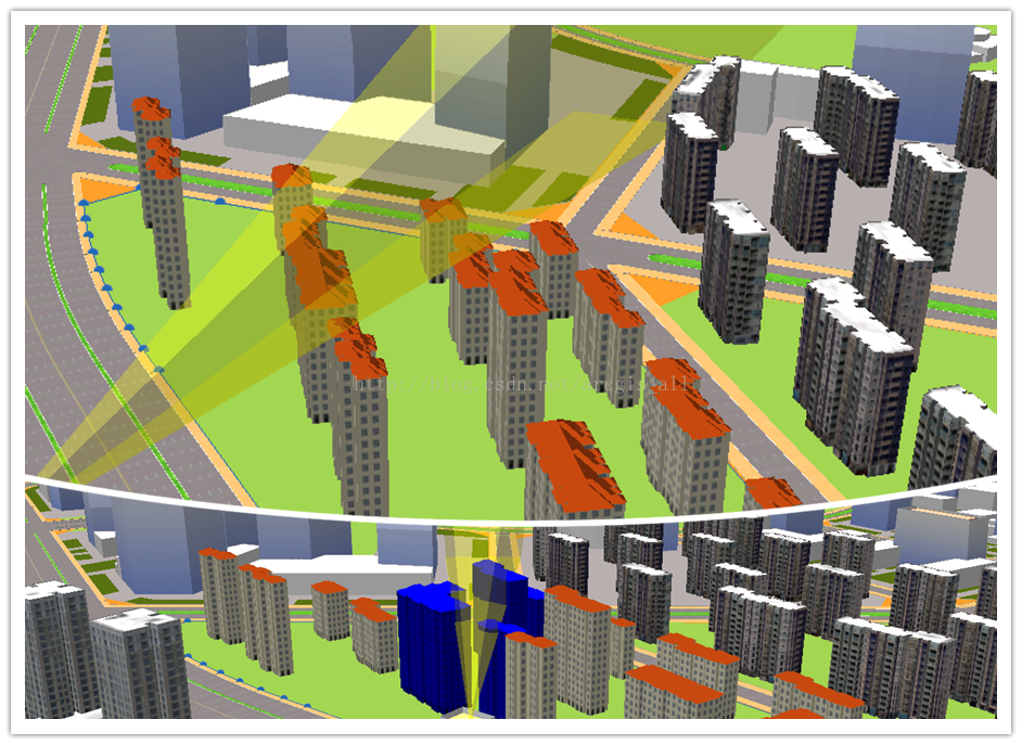 CityEngine 在生成建筑布局时同样可以综合考虑净、视域景观等需求,并根据这些相关需求调整建筑的高度使之满足相应的需求。
