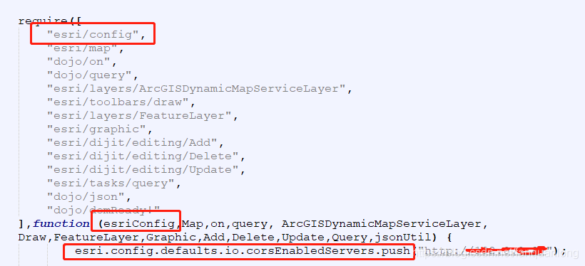 esri.config.defaults.io.corsEnabledServers.push("")需要将Server所在机器添加到corsEnabledServers这个列表里的.