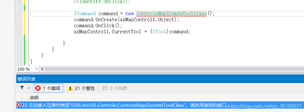 今天在做一个 AE 放大控件的时候,报无法嵌入互操作类型“ESRI.ArcGIS. Controls .ControlsMapZoomInToolClass”。请改用适用的接口的错误,