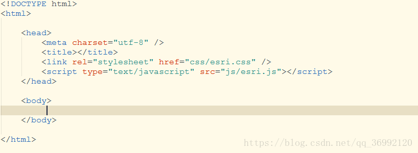 2、创建html页面,分别在<head></head>引入esri.css和esri.js(官网命名是:init.js);