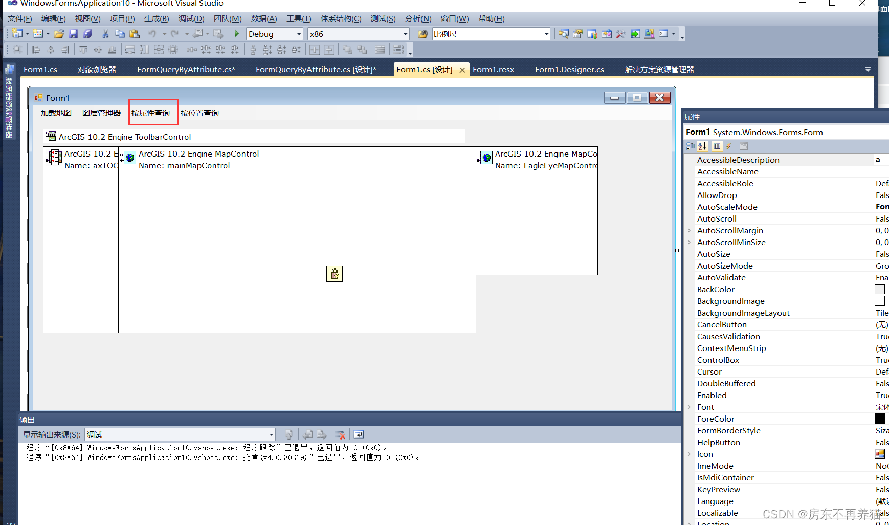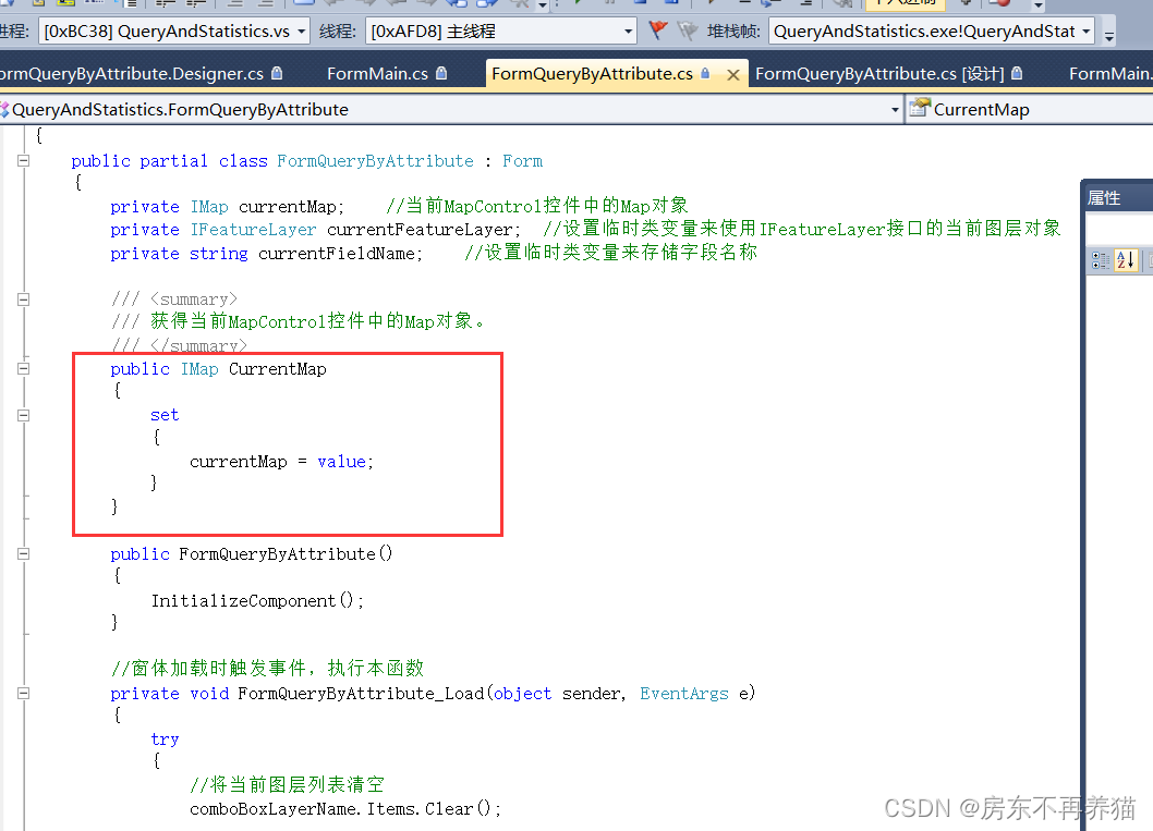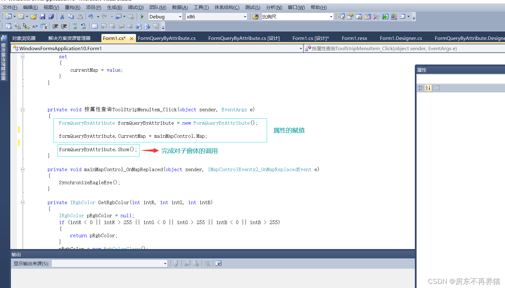 通过建立CurrentMap属性得到MapControl的Map对象的属性,并加入实现调用子窗体的代码: