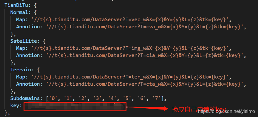 3.将leaflet.ChineseTmsProviders中的key换成自己申请的key