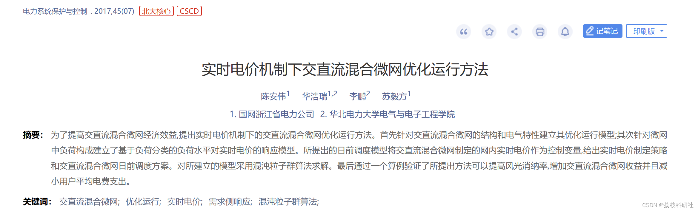 [1]陈安伟,华浩瑞,李鹏等.实时电价机制下交直流混合微网优化运行方法[J].电力系统保护与控制,2017,45(07):13-20.